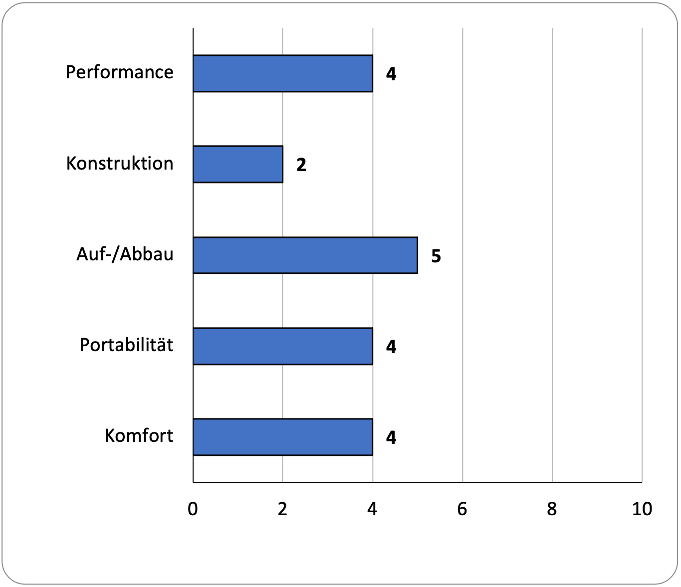 Auf-/Abbau - Obwohl es sich leicht aufpumpen lässt, sind die Ventile beim Aufpumpen etwas schwer zu bedienen. Die Trocknungszeit war jedoch kein Problem, da PVC sehr schnell trocknet.
